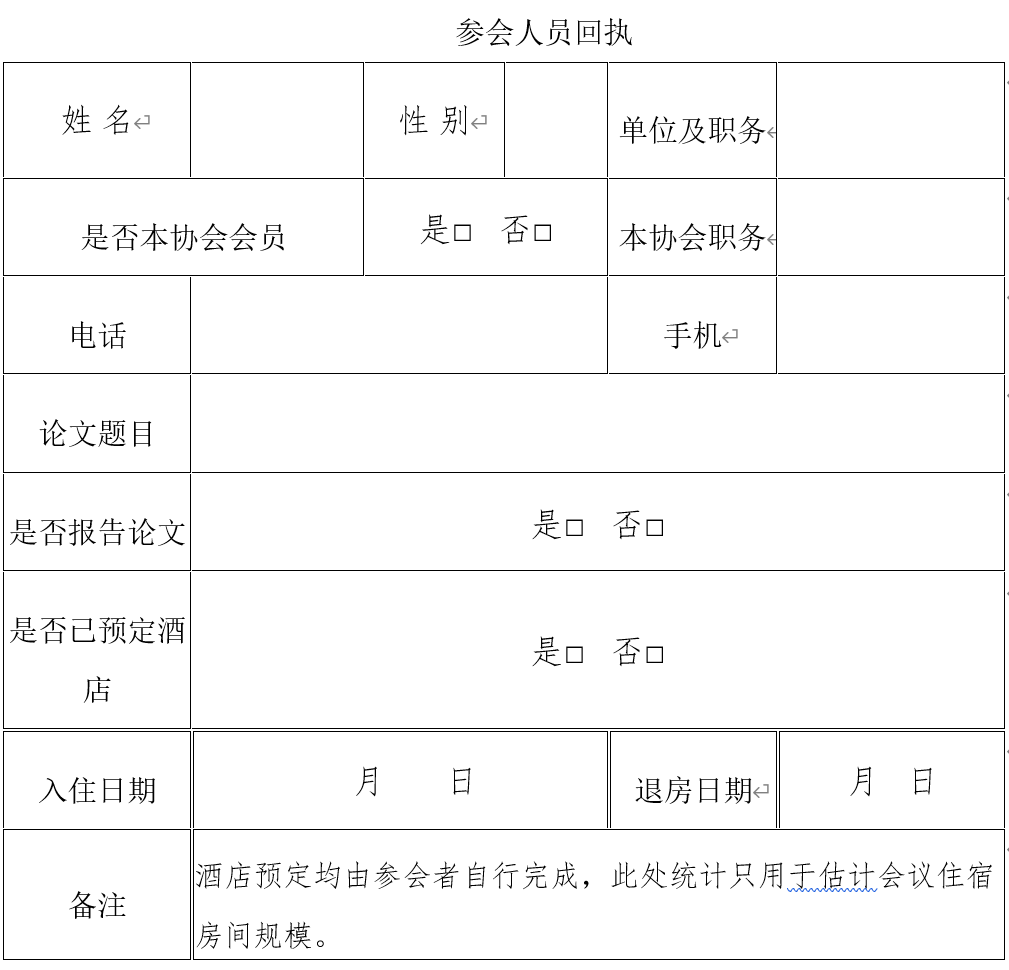 会议回执请发送到:rsachy@163.com。本回执主要用于了解参会人员情况,并及时通知参会事宜,请参会人员根据正文的酒店预订方式完成酒店预订。